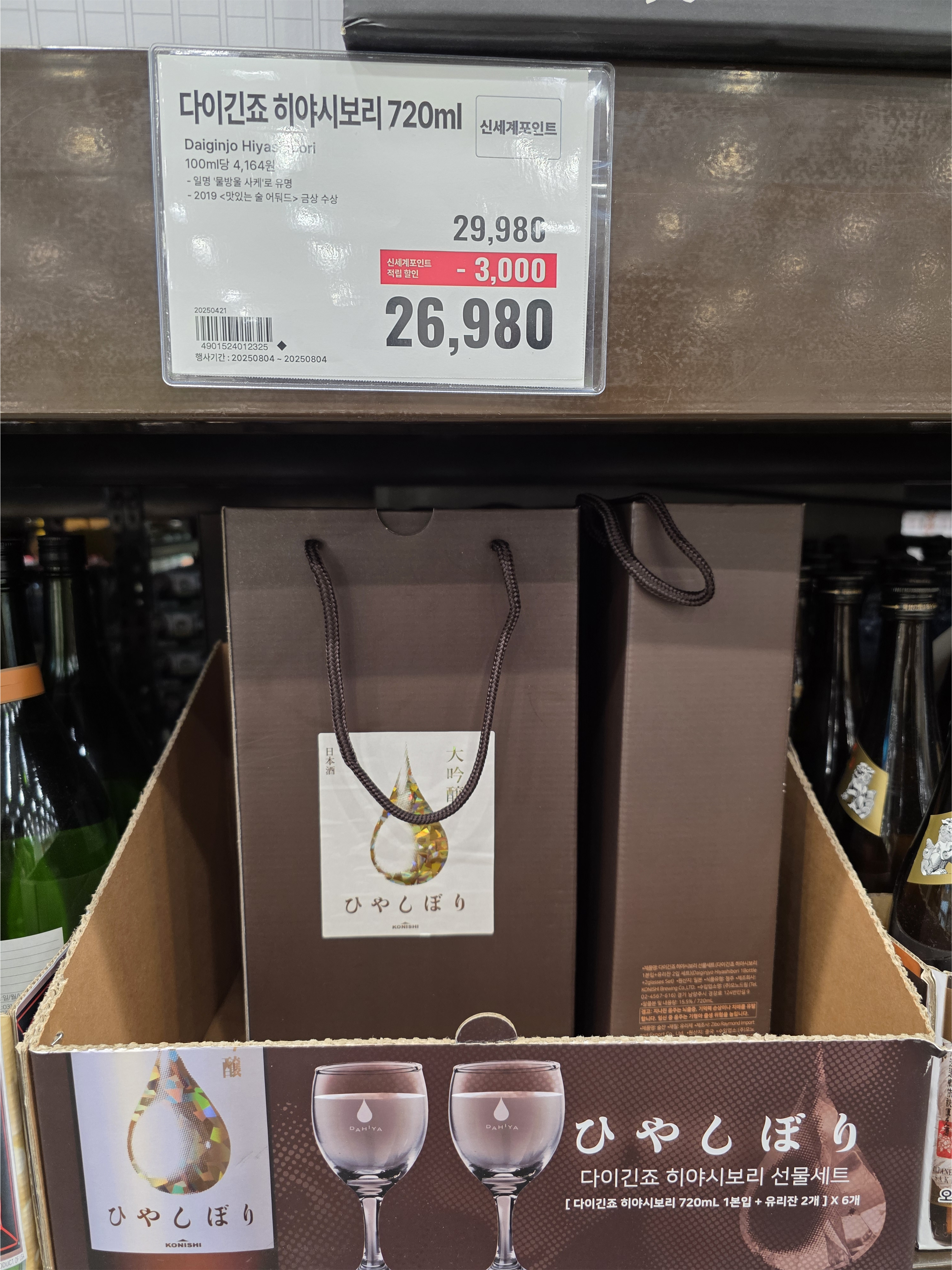 그중에서도 이번 달엔 할인 중이던 사케 ‘다이긴죠 히야시보리’가 눈에 띄었어요.