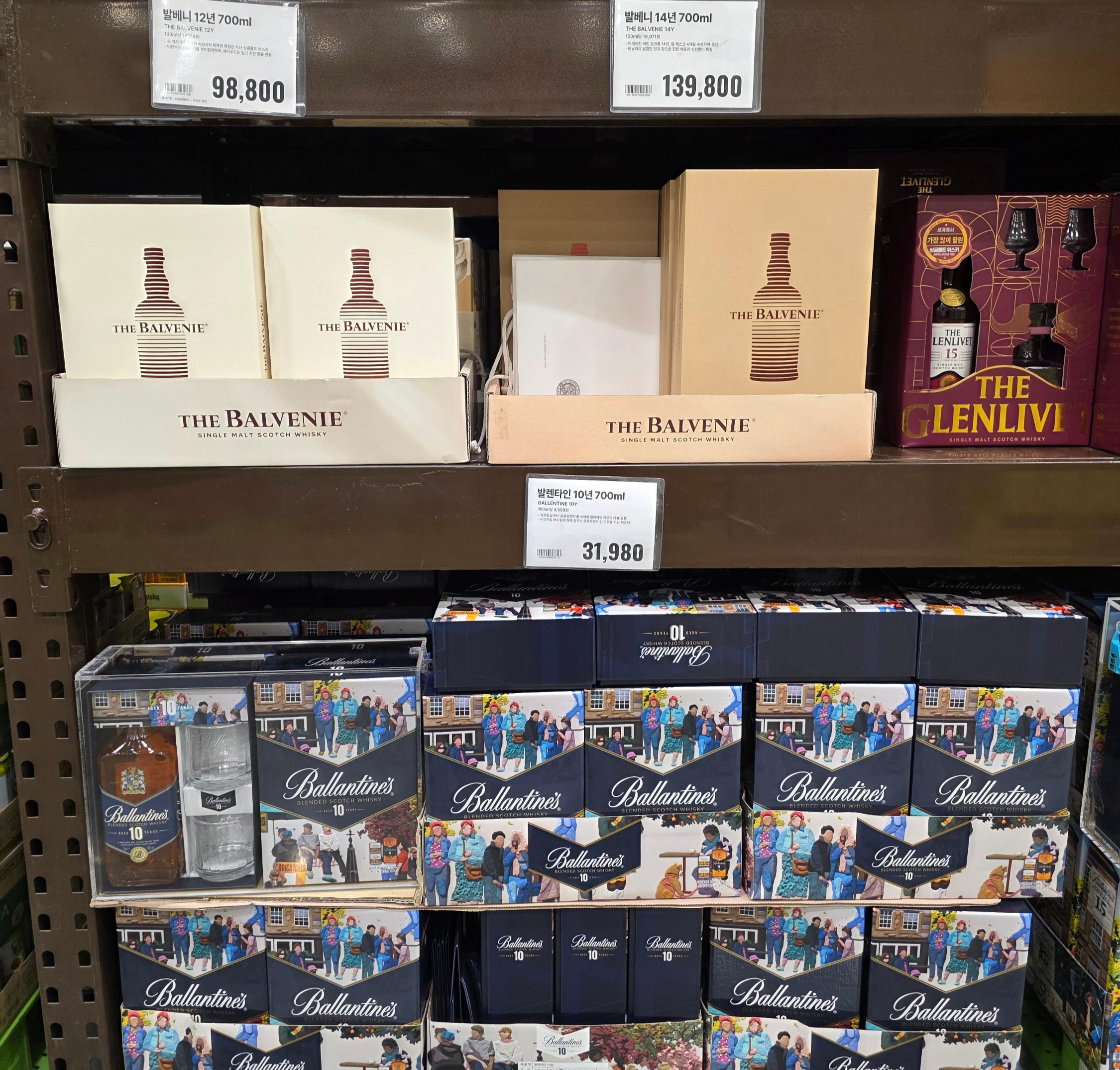 이번 9월 트레이더스 킨텍스점 양주존은 명절 분위기가 물씬 풍겼습니다. 추석을 앞두고 있는 시기라 그런지, 선물용으로 좋은 고가의 양주들이 눈에 띄게 많았고, 대부분 전용잔이 포함된 패키지 형태로 구성되어 있었어요. 매대 한 켠에는 선물용 쇼핑백도 함께 진열되어 있어서, 추석 선물을 고민 중이시라면 한 번쯤 들러볼만한 구성이라는 생각이 들었습니다.